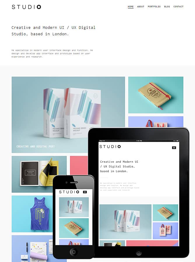 Next on our list of clean WordPress themes for designers is Studio. With this theme you can represent your design studio in a stylish way. The design is minimal, so nothing will distract your visitors from the content you’d like to share with them.