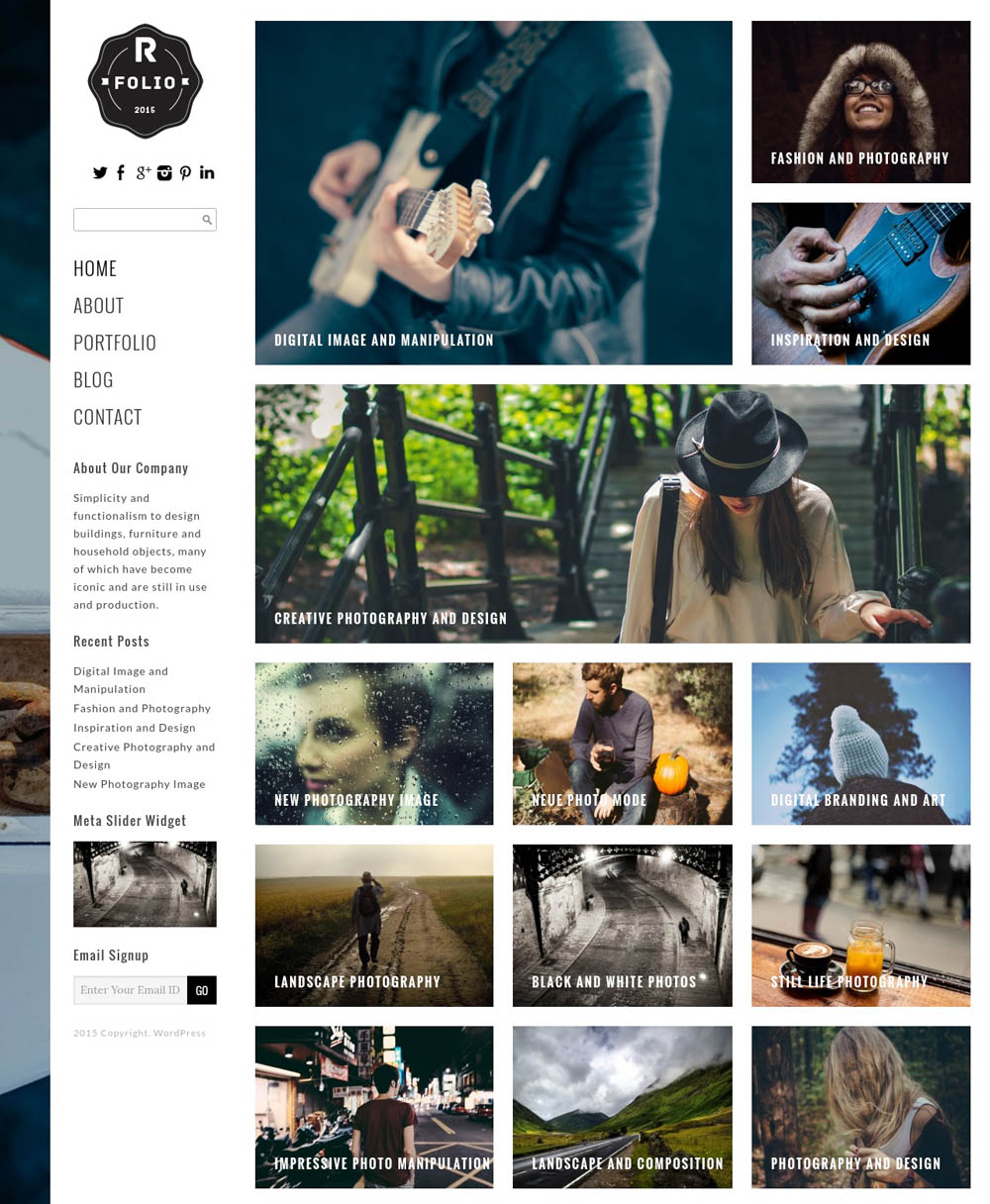 Freelancer. The name speaks for itself. This clean WordPress theme is a good solution for designers, freelancers,photographers, illustrators and anyone looking to create an amazing online presence. With this WordPress theme you get a clean design, a minimal layout, a sticky menu, a stylish slider, a visually appealing portfolio section and so much more.The theme looks just great, but you can still customize it to make it look the way you want.