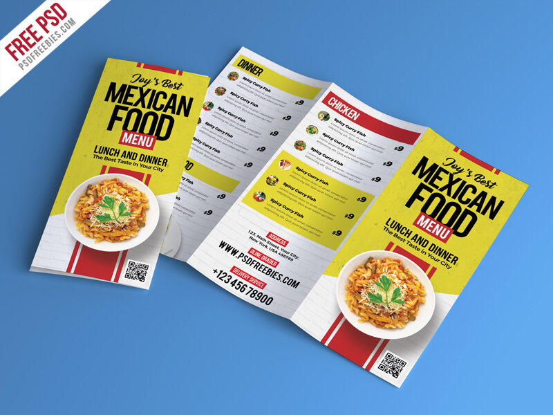 5) Free Food Menu Tri-fold Brochure PSD Template
