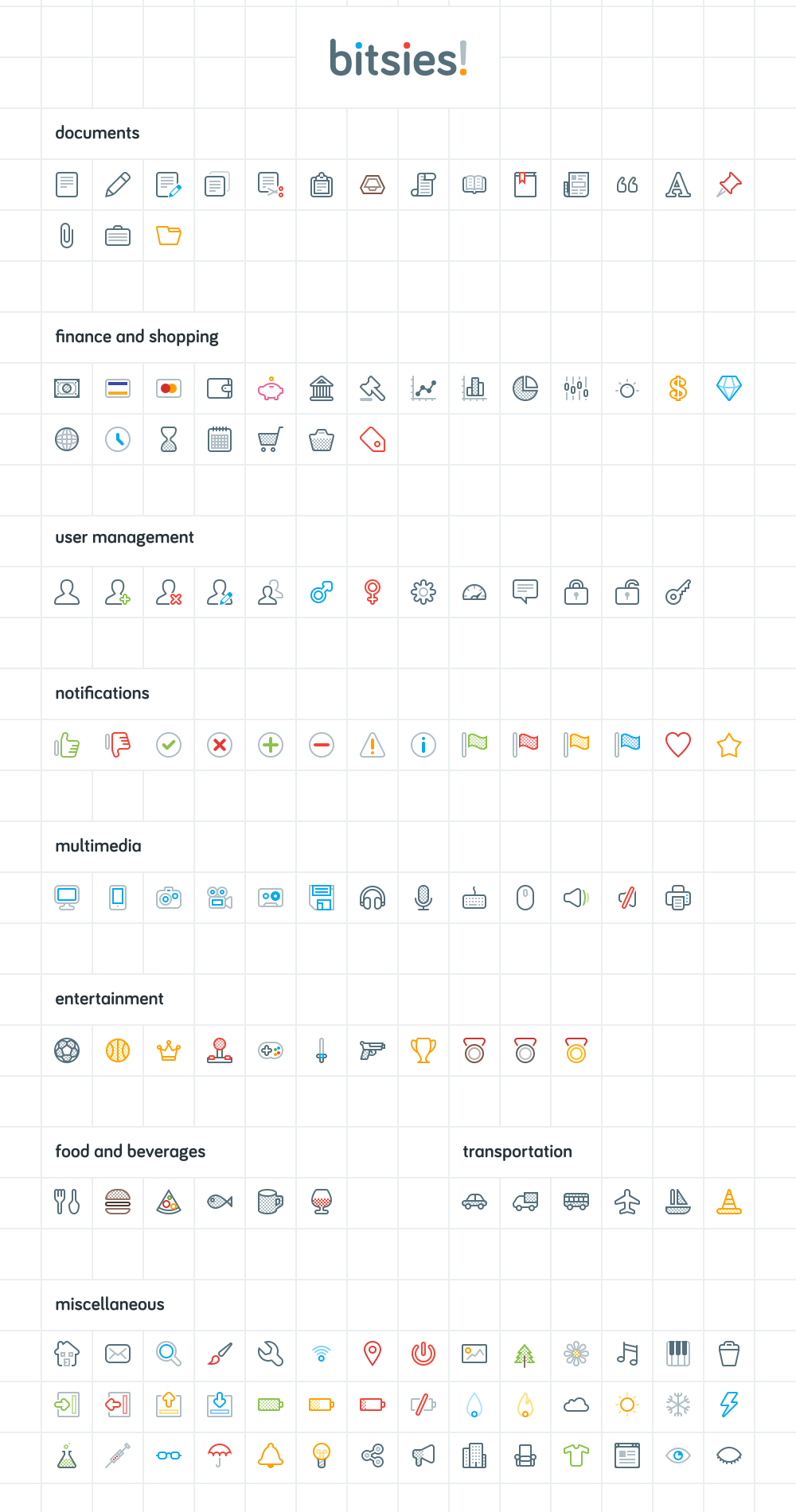 Friends, today's featured freebie is a set of 143 free icons called Bitsies. These are tiny, but powerful and colorful. They come in vector shapes, well-organized in folders, and can easily be modified and resized without loss of quality. Another best part of this icons set is that they also come as SVG and icon font. With love and hugs, the credit goes to the author, Recep Kutuk.