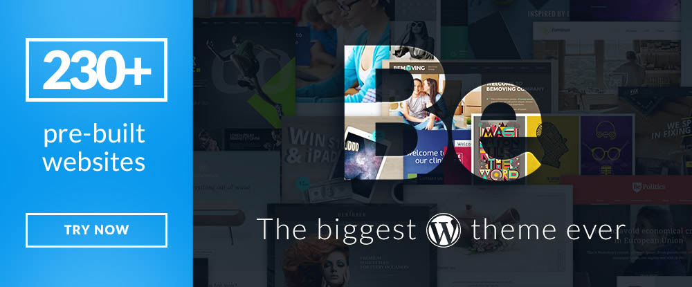 The feature that seems to stand head and shoulders above Be’s other features, and the features offered by most WordPress themes for that matter, is the collection of more than 230 pre-built websites. These pre-built websites serve as conceptual ideas, and more importantly as baselines for building any website, mobile app, blog, or portfolio type you can think of. If your client has a cool, yet challenging, idea for a website, you can feel confident in meeting that challenge if Be is your design toolbox.