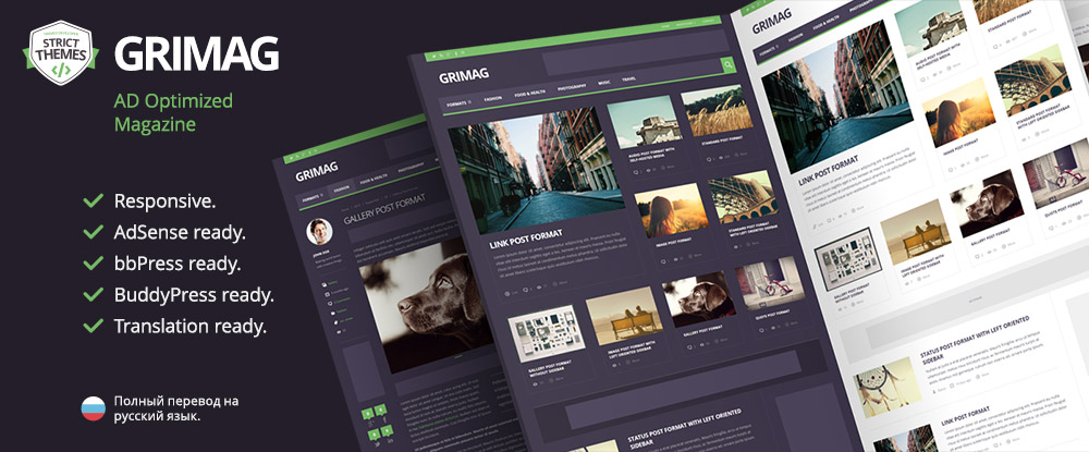 Responsive AdSense advertisement areas are strategically inserted, while blending in perfectly with the surrounding content. Grimag is 100% WordPress compatible.